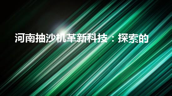 河南抽沙機革新科技:探索的未來?